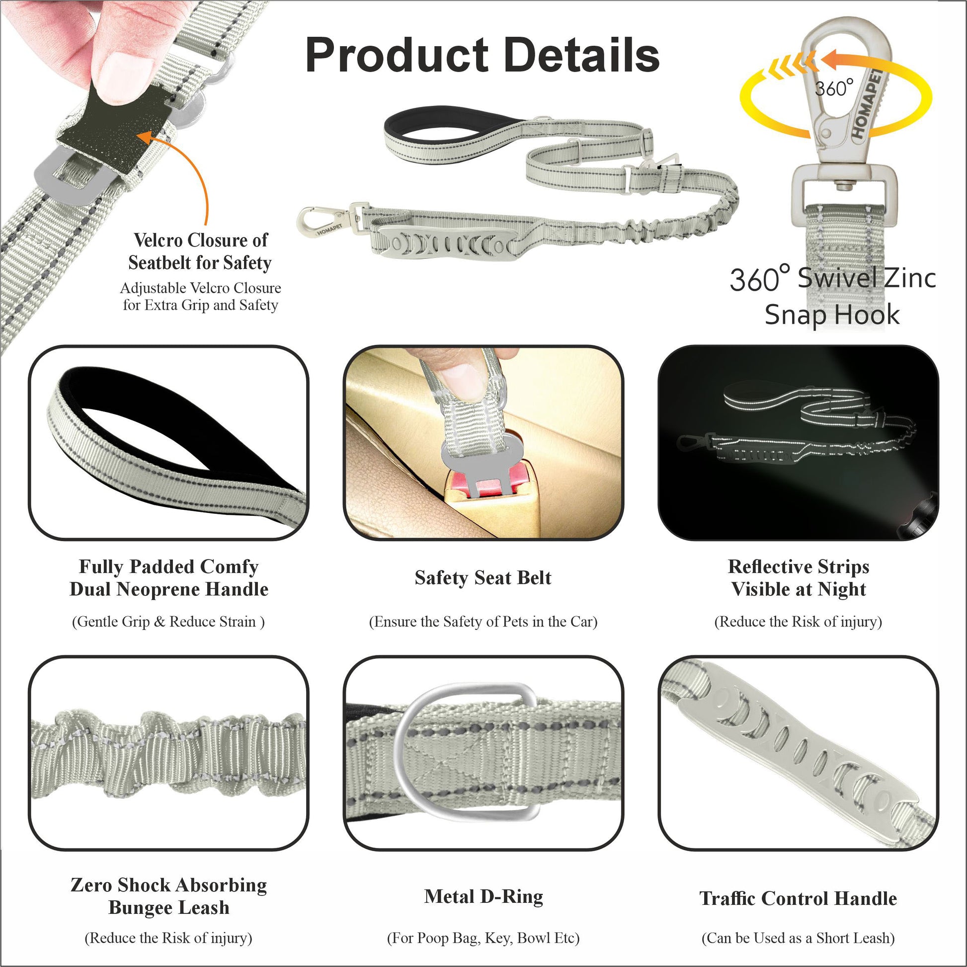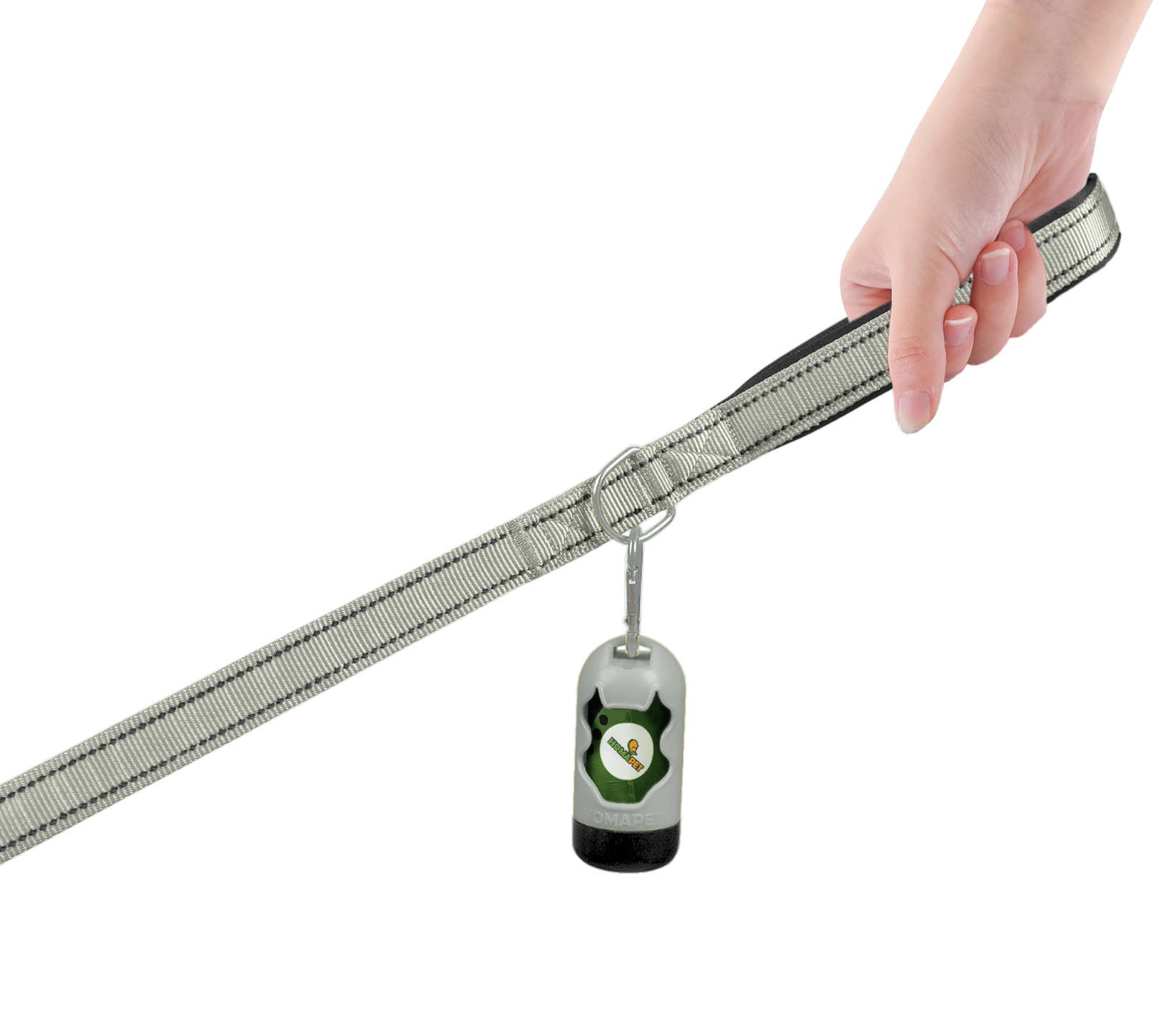 - Includes a poop bag holder attachment for hands-free walks.