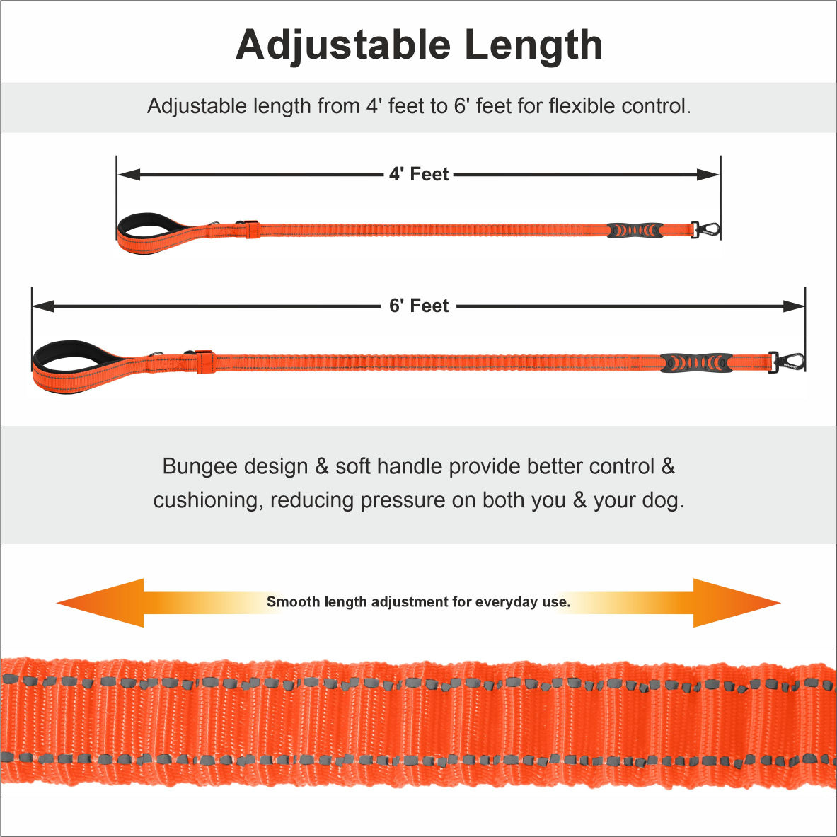 Orange Polyester Full Bungee Dog Leash